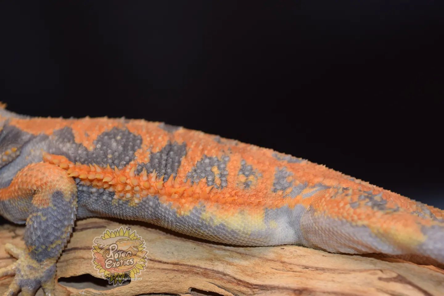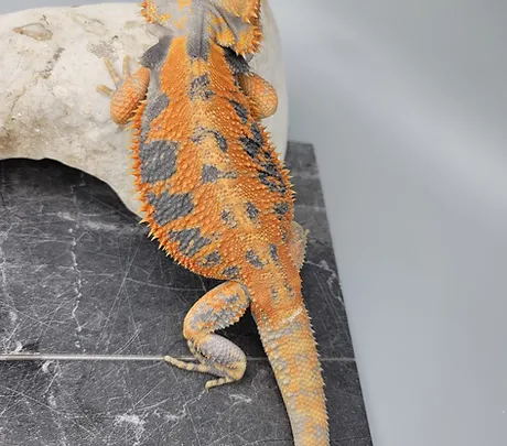 DUNNER Developed and named by Kevin Dunn. This is a dominant trait meaning there is no super form and it cannot be recessive. So no such thing as "het dunner" and only one parent has to be a dunner to produce dunner offspring. Also, 2 dunners breeding does not create a superform like how leatherback creates silkies. The easiest way to tell a dunner is they don't have the common rings down the tail. They will usually have spots of lines that run down the tail instead of ringing around it. Their scales point in all different directions and are shaped more cone-like. Also look at the dragon's beard and stomach as the spikes and scales are especially noticeable and facing all different directions. Dunners have notable patterns but there is no specific pattern that will always appear. Fun fact: The dunner has a very strange anomaly where they tend to hold food in the back of their throat, similar to a hamster does in their cheeks.